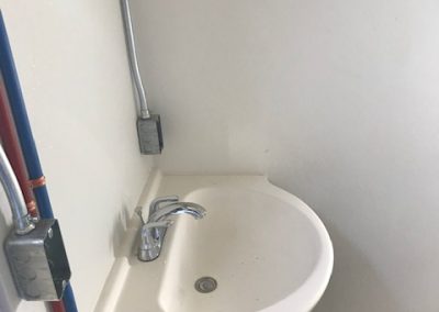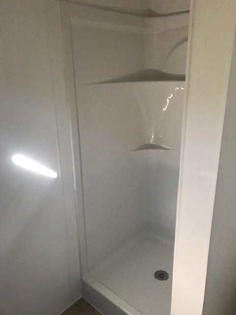 There are 2 full restrooms with a toilet, sink, and shower. Each room is piped and wired separately for easier maintenance. If there is low water pressure or low voltage, one of the 2 rooms can be used.