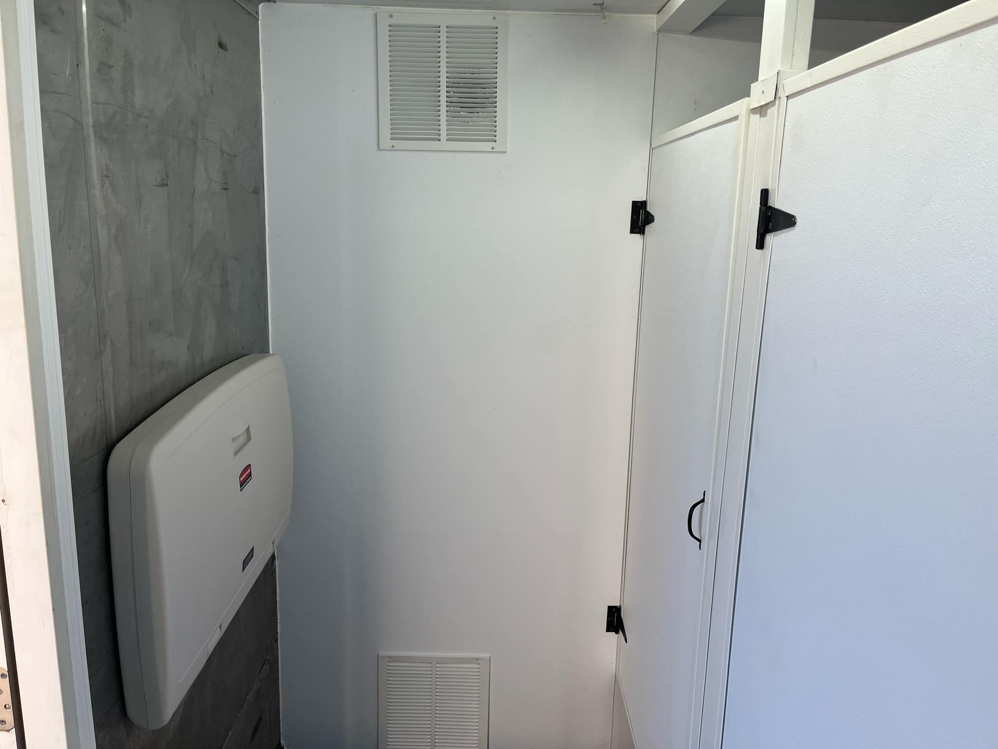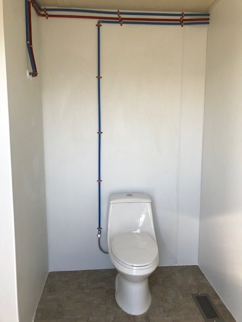 This is a portable climate-controlled restroom set up with air conditioning and heat throughout the facility.