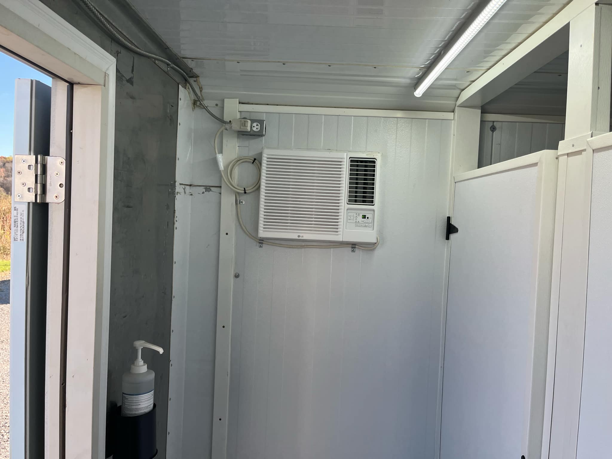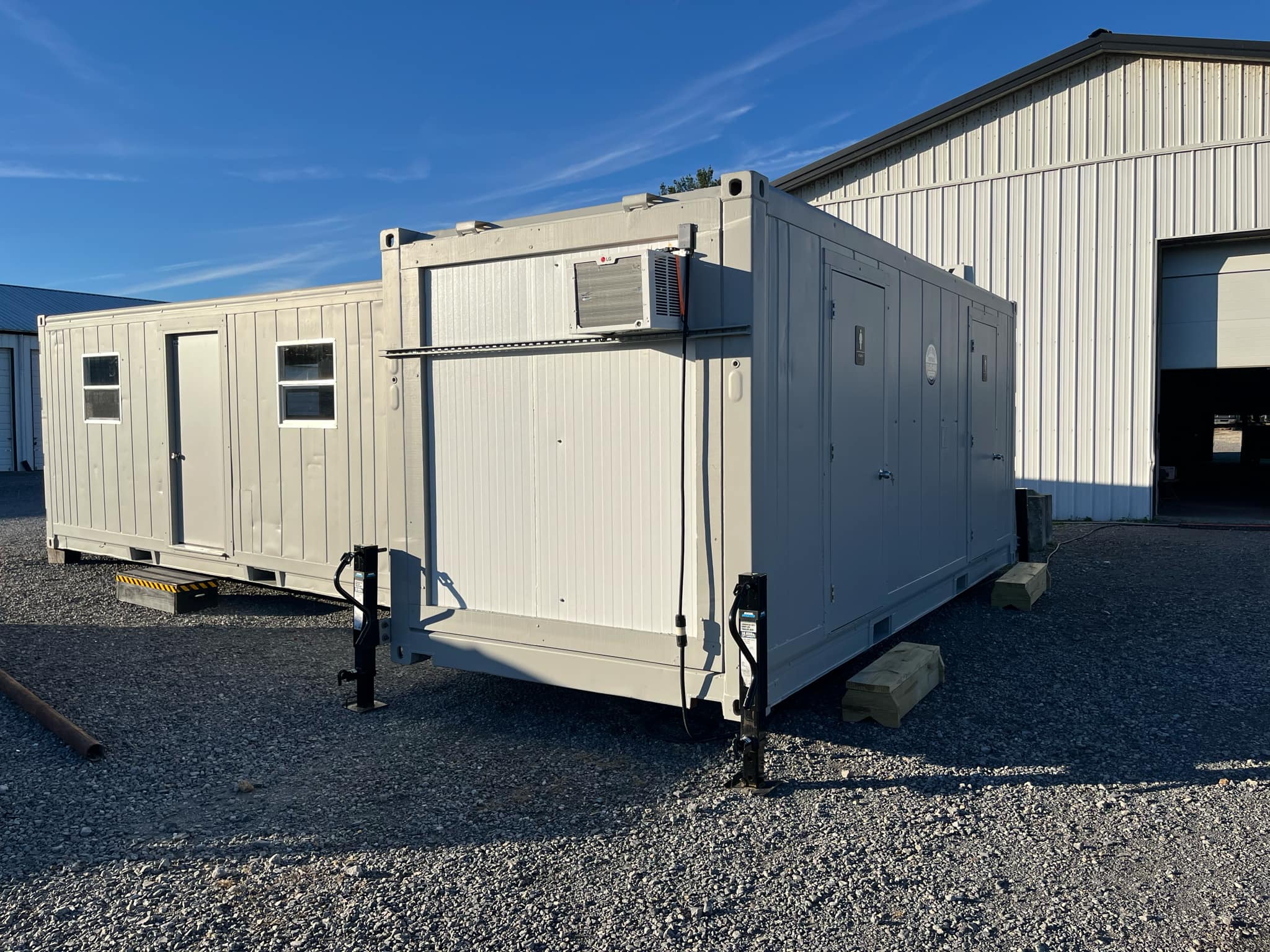 - Shipping container unit comes with a sleeve for an A/C unit in both rooms